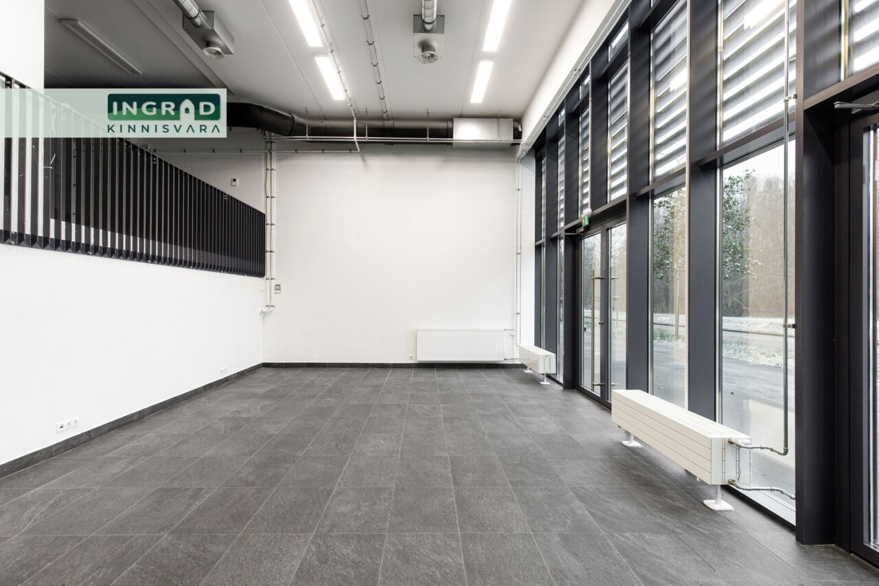 Tänavatasapinnal asuv ruum on praktiliselt täiskõrguses vitriinakendega – palju loomulikku valgust, hea nähtavus ja suur reklaamipind.