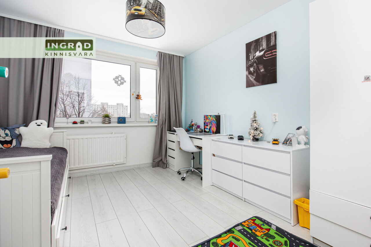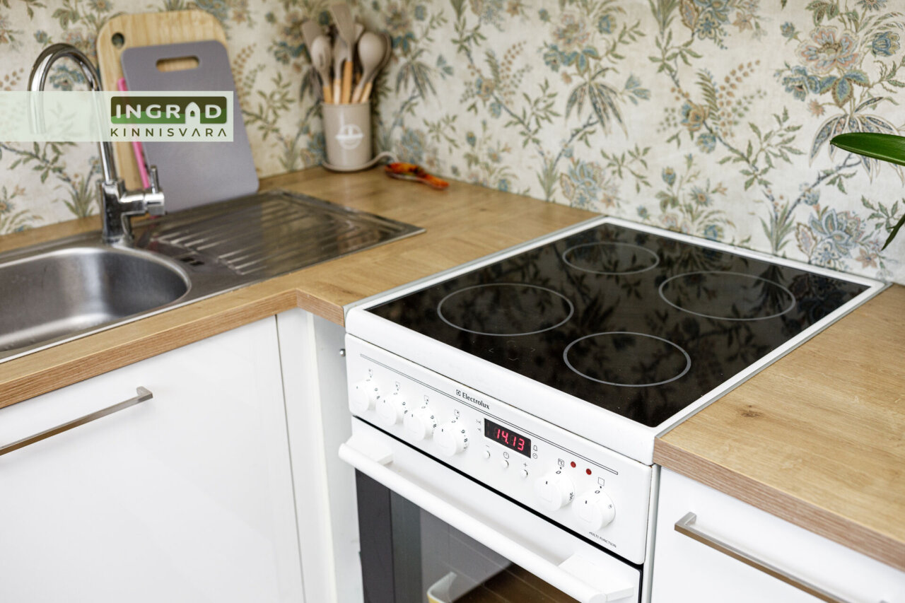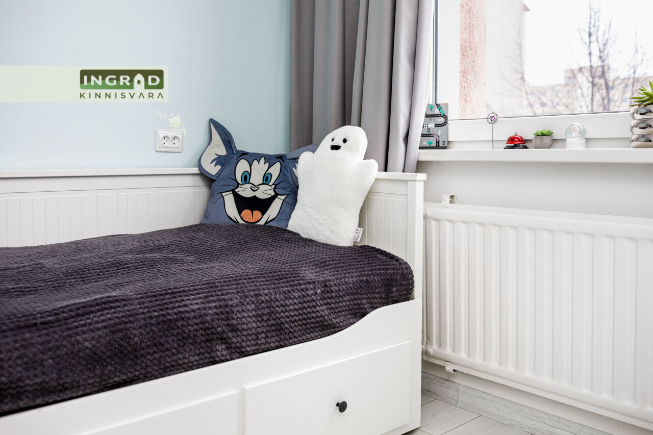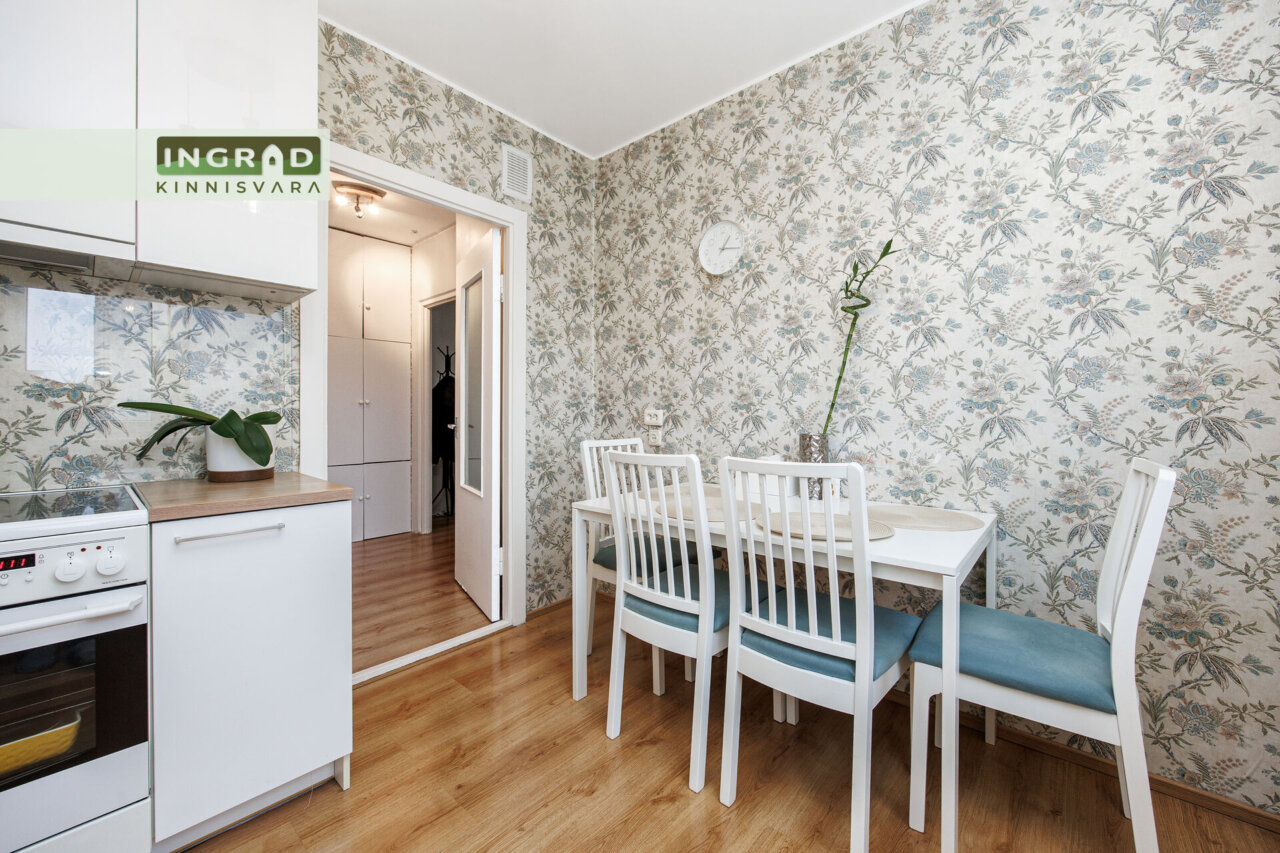 Planeering on klassikaline ja mugav: esik viib sind elutuppa/magamistuba 1, kust on väljapääs klaasitud rõdule. Elutoas/magamsituba 1 on mahukas sisseehitatud kapp, suur voodi ja televiisor. Teine tuba sobib nii magamistoaks kui lastetoaks, seal on voodi, kirjutuslaud, kapp, kummut ja spordisein. Köök on eraldi ning varustatud kogu vajaliku mööbli ja tehnikaga — elektripliit koos ahjuga, külmik, nõudepesumasin, söögilaud ja toolid. Vannitoas on pesumasin, esikus esikukummut ja nagi ning koridoris praktiline majapidamiskapp. Kõik piltidel nähtav mööbel ja tehnika jääb korterisse.