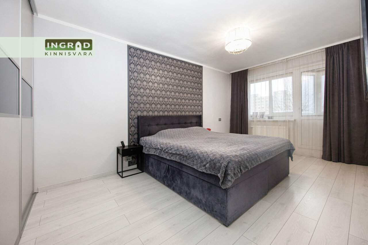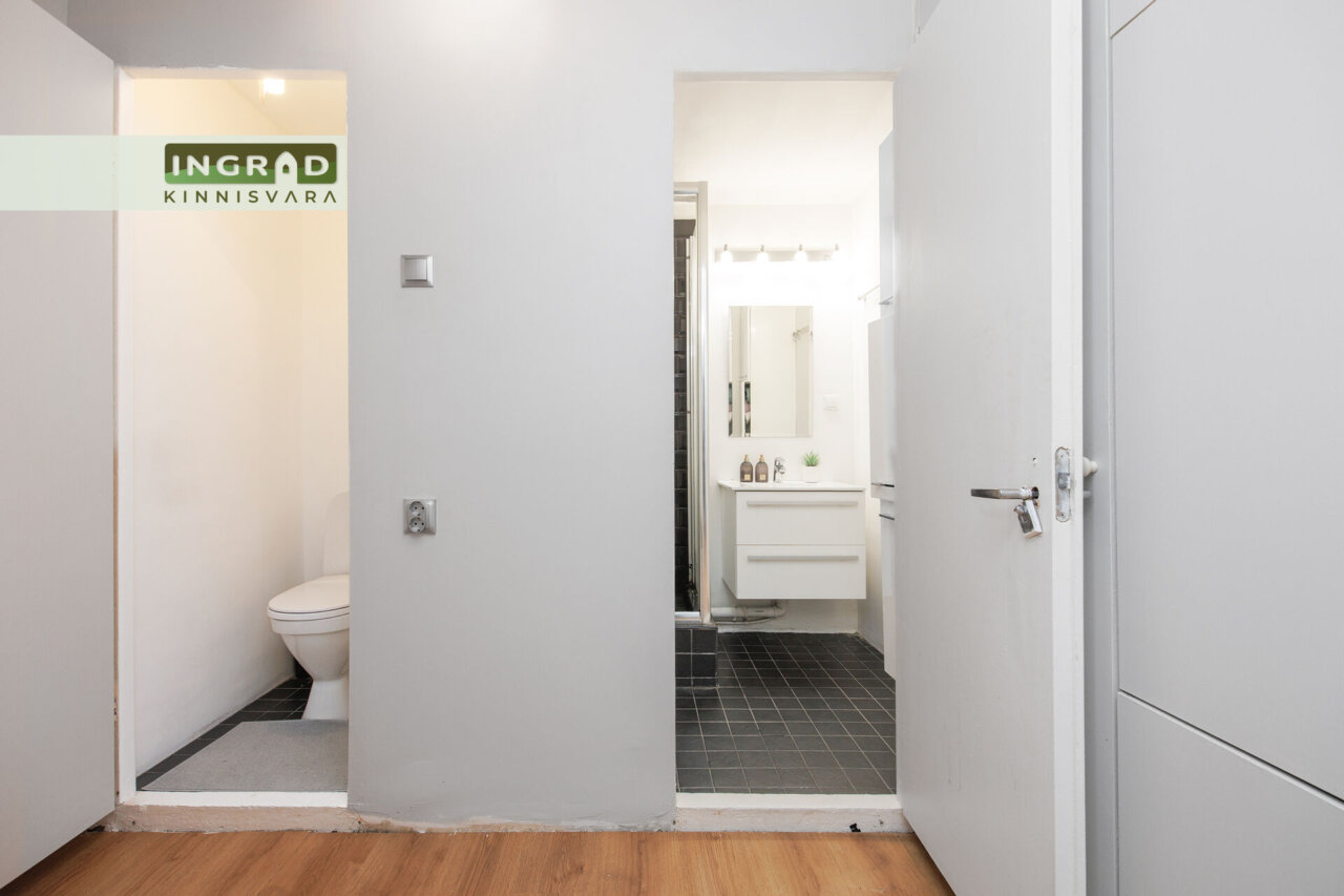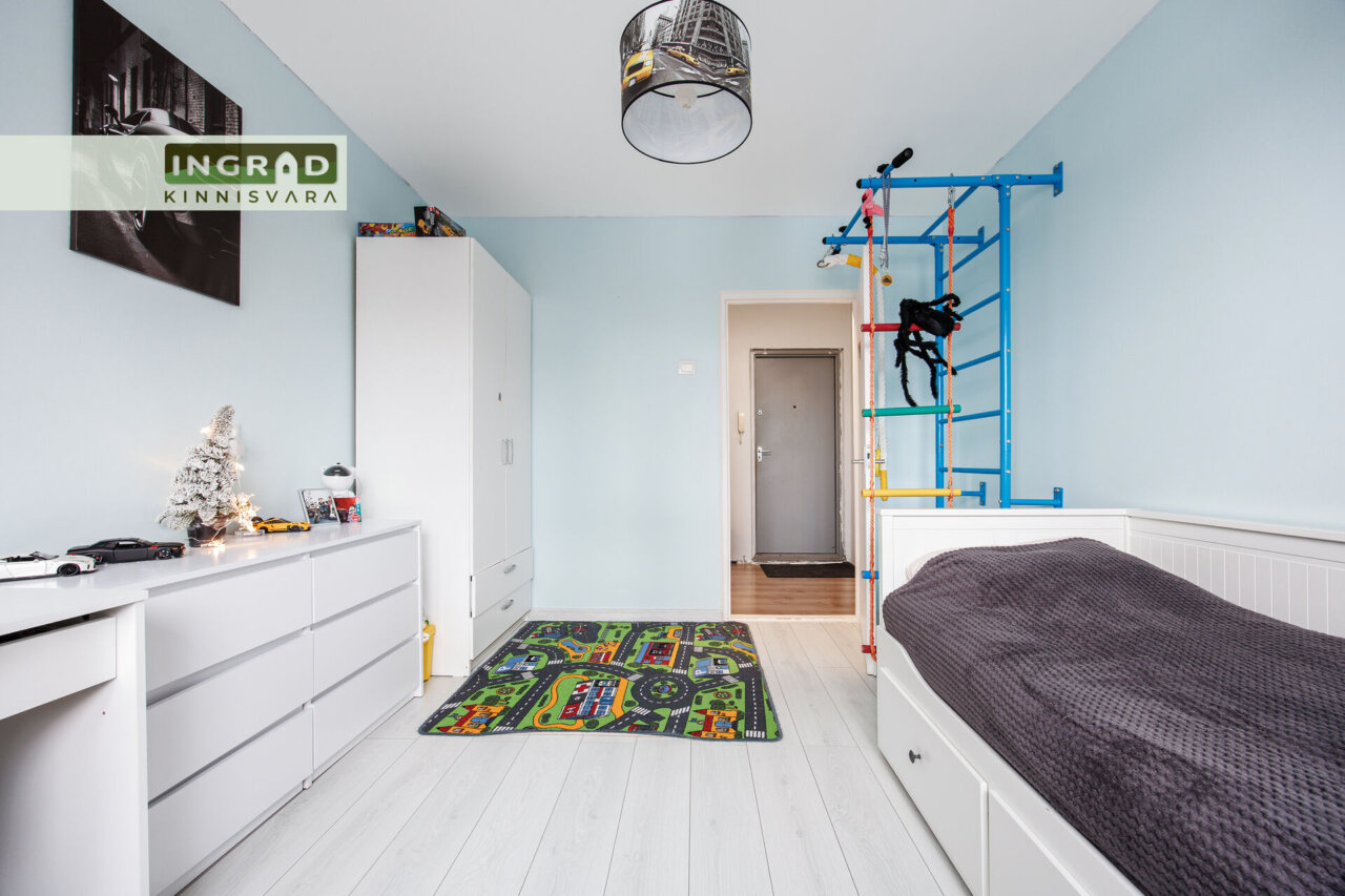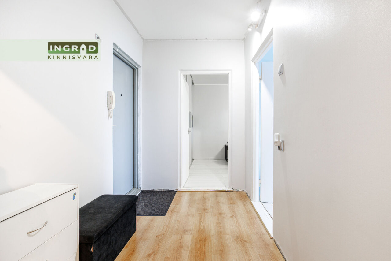 Planeering on klassikaline ja mugav: esik viib sind elutuppa/magamistuba 1, kust on väljapääs klaasitud rõdule. Elutoas/magamsituba 1 on mahukas sisseehitatud kapp, suur voodi ja televiisor. Teine tuba sobib nii magamistoaks kui lastetoaks, seal on voodi, kirjutuslaud, kapp, kummut ja spordisein. Köök on eraldi ning varustatud kogu vajaliku mööbli ja tehnikaga — elektripliit koos ahjuga, külmik, nõudepesumasin, söögilaud ja toolid. Vannitoas on pesumasin, esikus esikukummut ja nagi ning koridoris praktiline majapidamiskapp. Kõik piltidel nähtav mööbel ja tehnika jääb korterisse.