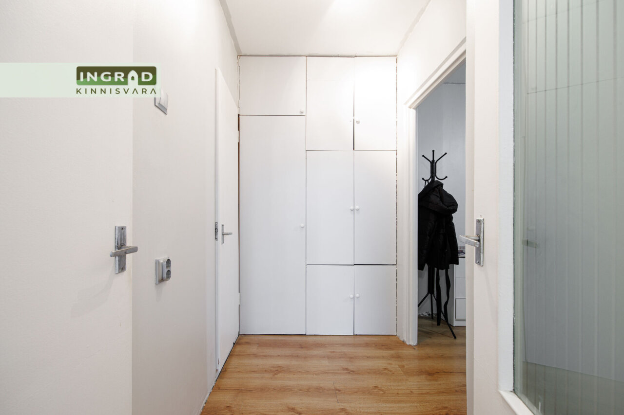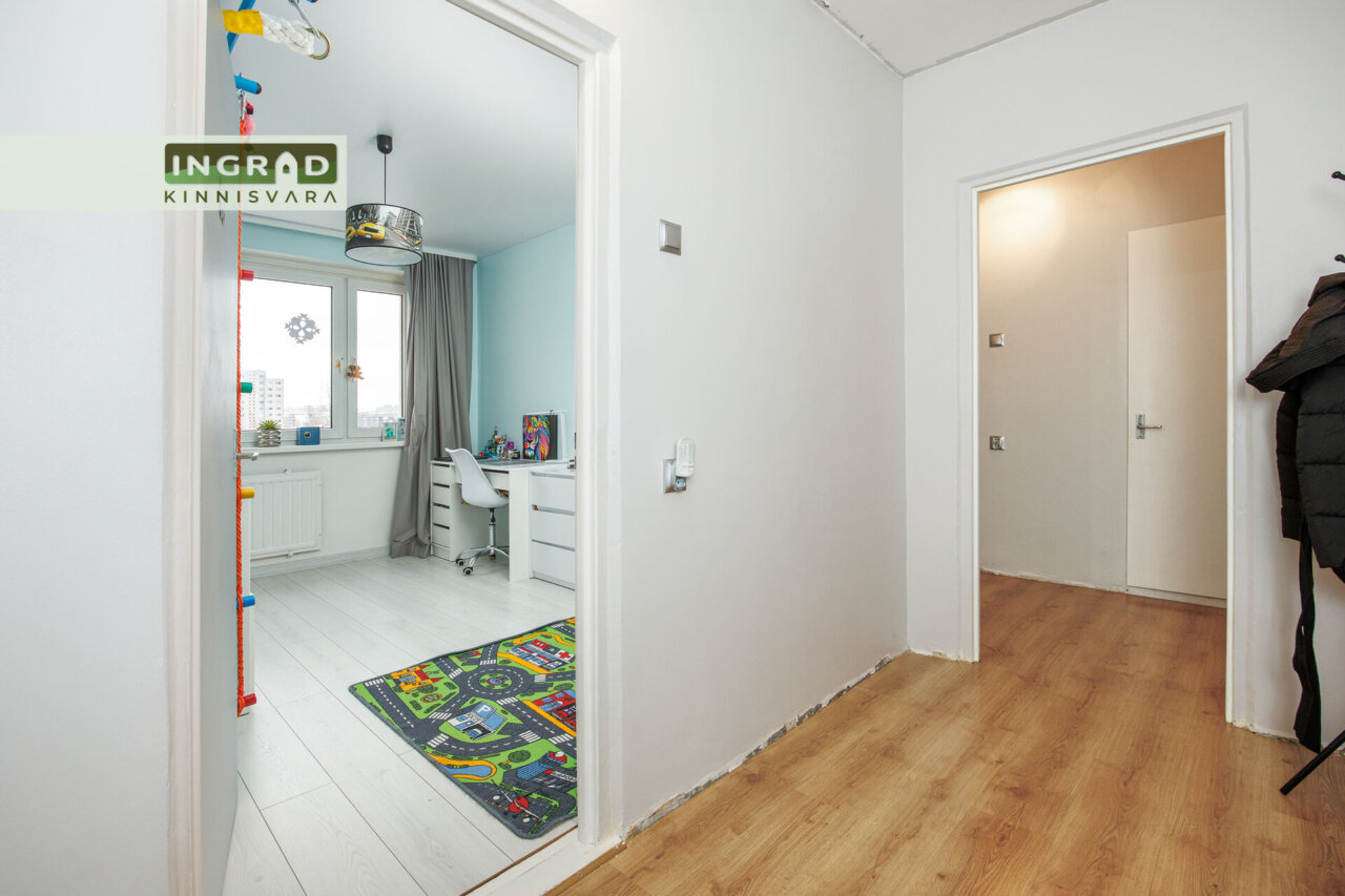 Korter paikneb 9‑korruselise maja neljandal korrusel ning asub maja keskel, mistõttu on see alati soe ja valgusküllane.