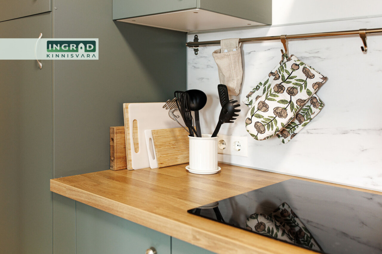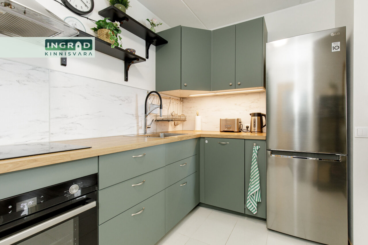 • Köök koos integreeritud tehnikaga (ahi Schlosser, induktsioonpliit, külmkapp LG, nõudepesumasin IKEA Bodarp)