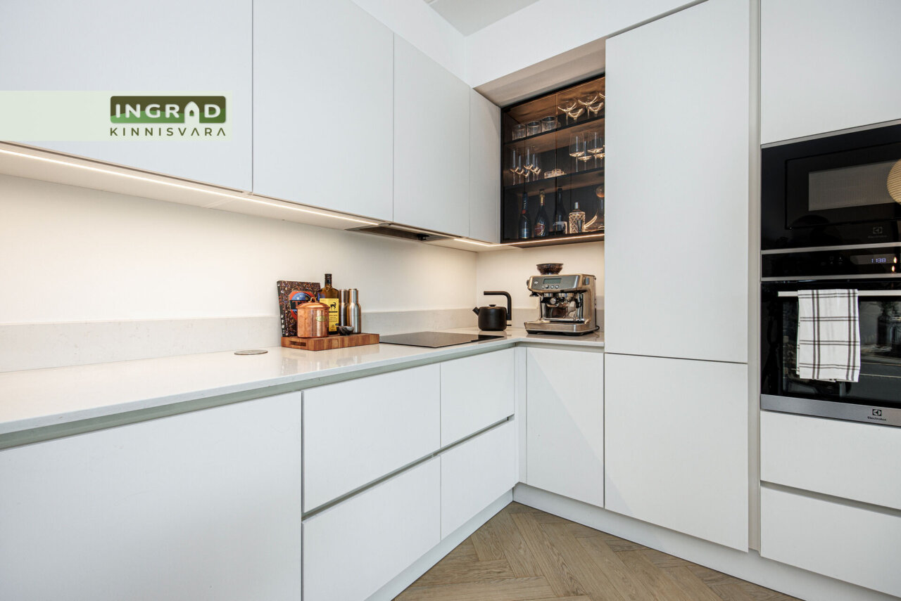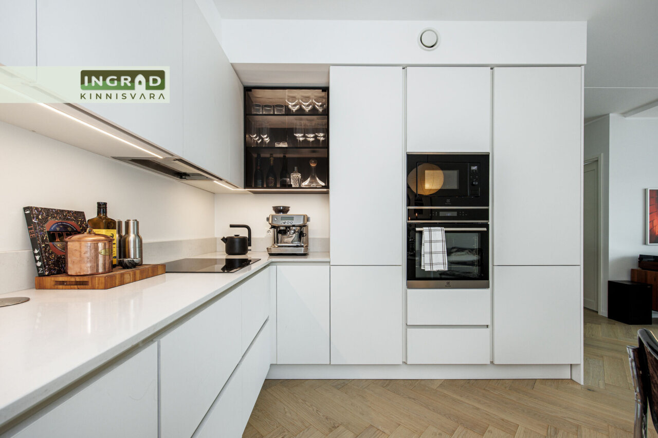Korter müüakse koos kogu kvaliteetse mööbli ja tehnikaga – stiilne köögimööbel integreeritud tehnikaga, mahukad sisseehitatud garderoobid, diivan, kontinentaalvoodi, pesumasin ja kuivati, televiisor. Ei mingeid lisakulutusi – osta ja ela või anna kohe üürile.