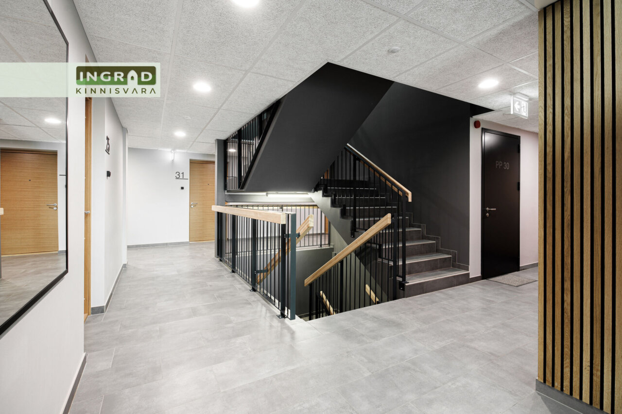 Kindel parkimiskoht maa-aluses garaažis ja panipaik hinna sees. Maja elanikele on olemas ka jalgrataste hoiuruum.