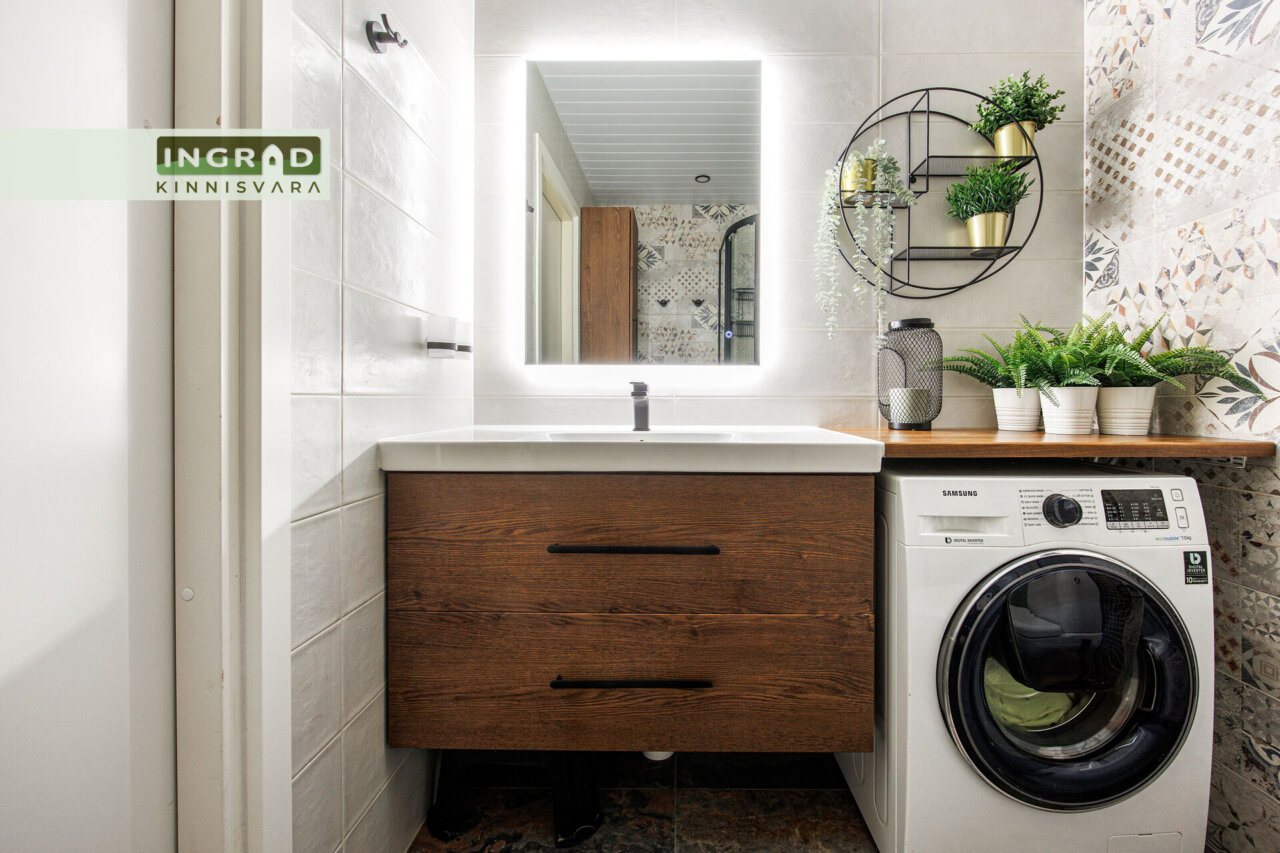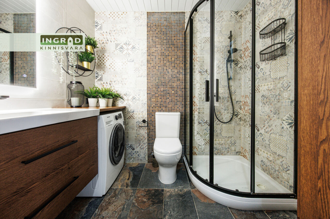 Vannituba renoveeriti täielikult 2023. aastal: uus sanitaartehnika, uuendatud elektrisüsteem ning paigaldatud põrandaküte.