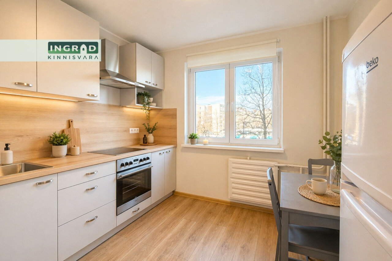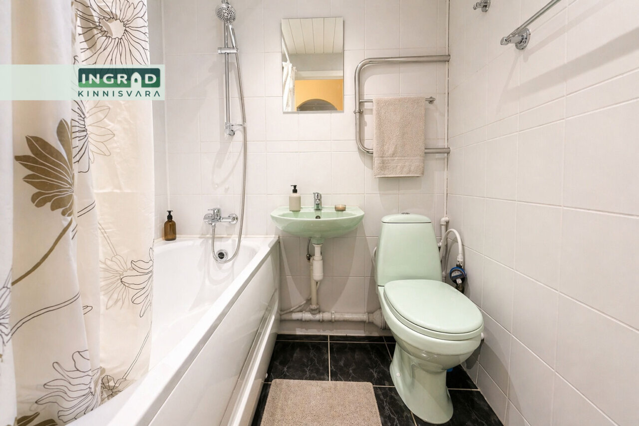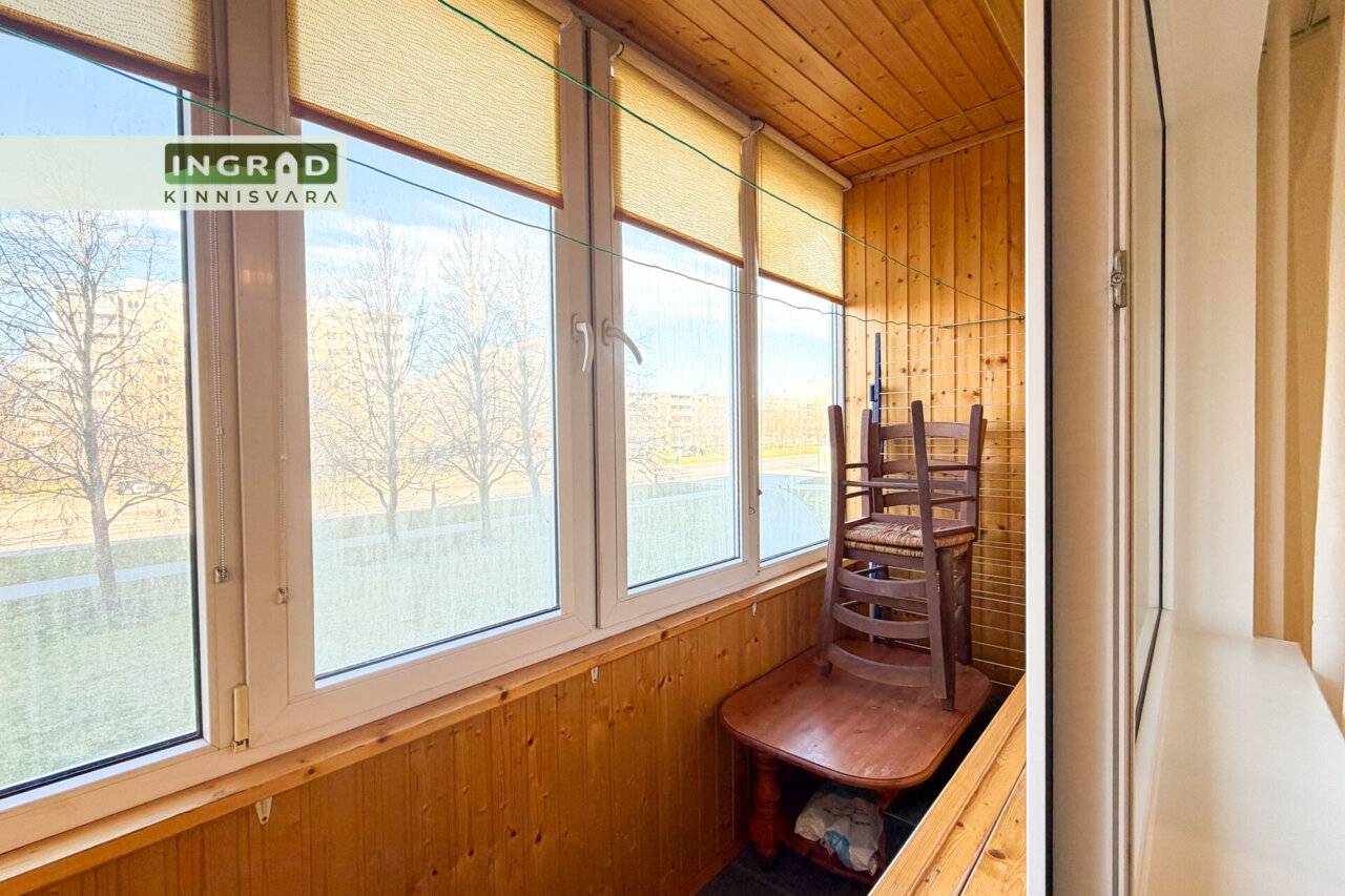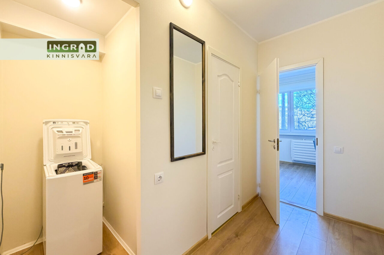 Korteri pindala on 32,7 m². Korter on puhas, hooldatud ning värskendatud remondiga. Korteris on eraldi köök ja praktiline planeering. Esikus paikneb eraldi panipaik / garderoob, mis pakub mugavat lisaruumi hoiustamiseks ning kuhu on paigaldatud pesumasin. Köögis on olemas köögimööbel, pliit, ahi, külmkapp ning söögilaud. Vannituba ja WC on koos. Toas on kapp ja lahtikäiv diivan. Korteril on klaasitud rõdu, kus on laud ja toolid – sobib hästi kasutamiseks väikese puhkeala või terrassina.