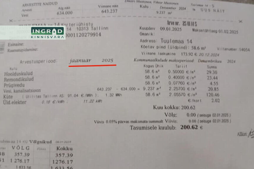 Kommunaalkulud talvel ca 200 eurot ja suvel umbes 75 eurot, millele lisandub elekter vastavalt tarbimisele.