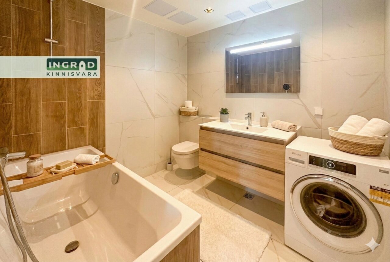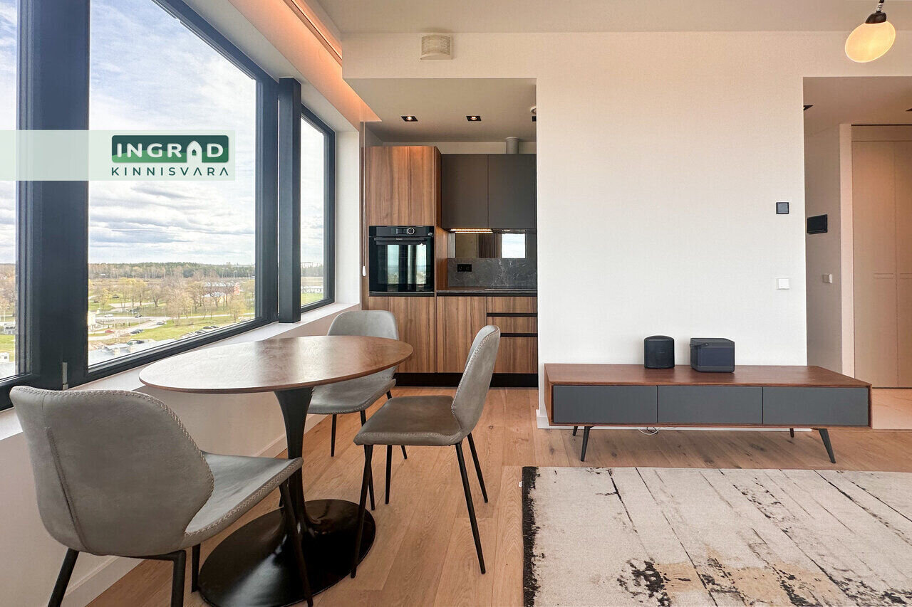 Kaasaegne ja valgusküllane 2-toaline KORTER avatud planeeringuga. Suurtest panoraamakendest avaneb imeline vaade üle Tallinna. Põrandaid katab naturaalne parkett, köök on stiilne eritellimusmööbli ja sisseehitatud tehnikaga. Elutoas mugav diivan, söögiala ja kaasaegne valgustus. Magamistoas kahene voodi ning mahukas garderoob. Vannituba on funktsionaalne, pesumasinaga.