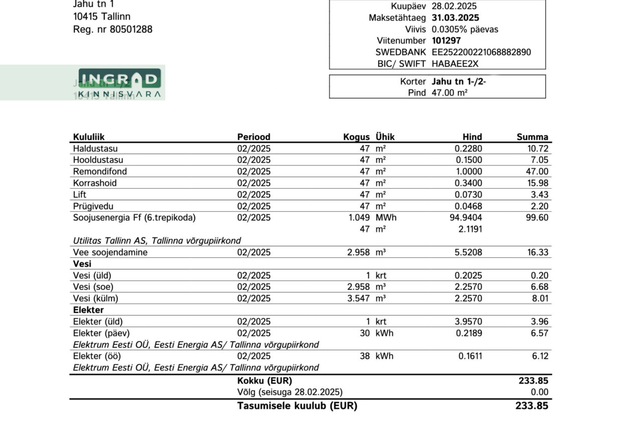 Korter on just läbinud värskenduse – seinad on äsja värvitud, vannitoas uus plaat ja täiesti uus pesumasin.