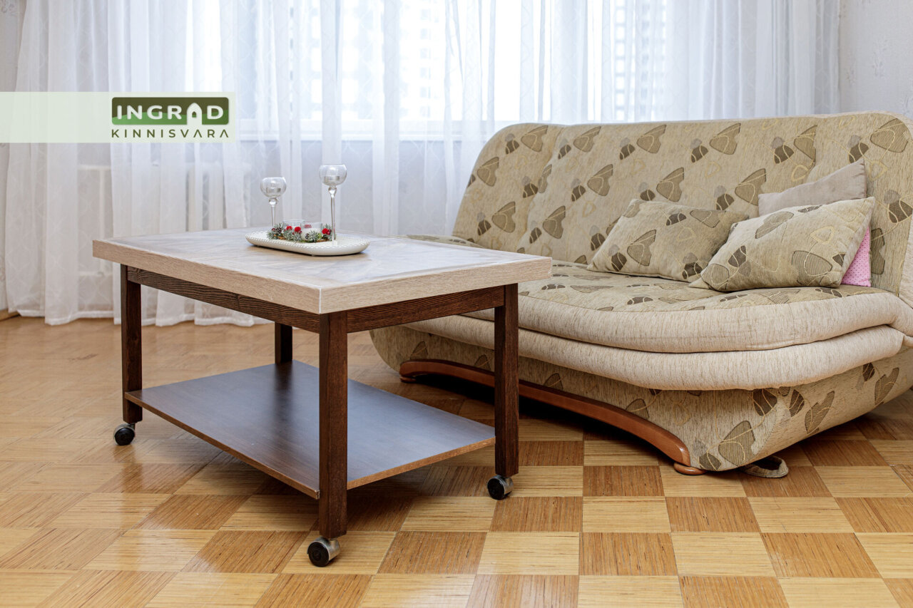 Samas magamistoas on kahene voodi uue madratsiga ning mahukas riidekapp. Elutoas on minimaalselt mööblit: diivan, diivanilaud, sektsioonkapp ja kokkupandav söögilaud. Esikus on samuti suur mahukas riidekapp.