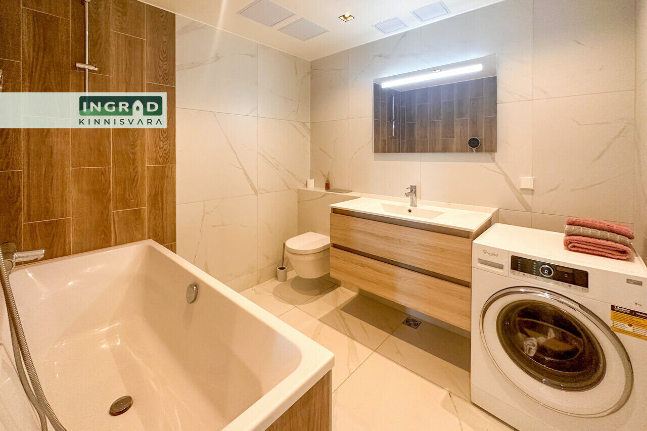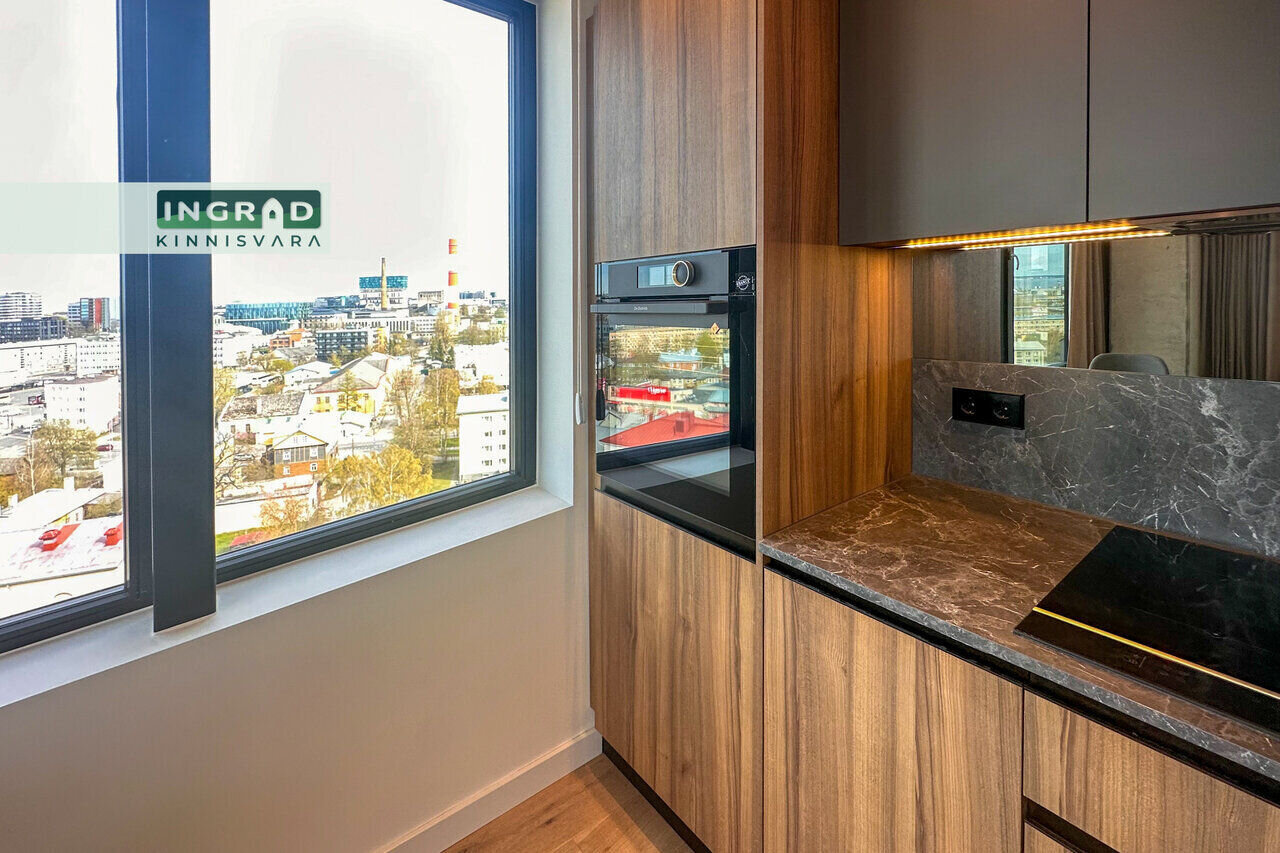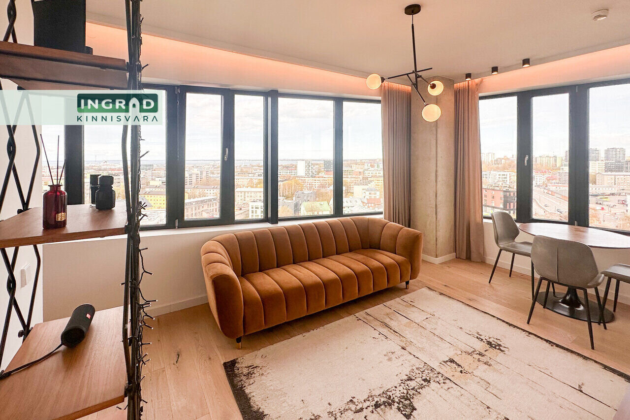 Современная и светлая 2-комнатная КВАРТИРА с открытой планировкой. Из больших панорамных окон открывается потрясающий вид на Таллин. Полы покрыты натуральным паркетом, кухня стильная — мебель на заказ и встроенная техника. В гостиной удобный диван, обеденная зона и современное освещение. В спальне двуспальная кровать и просторный шкаф-гардероб. Ванная комната функциональная, со стиральной машиной.