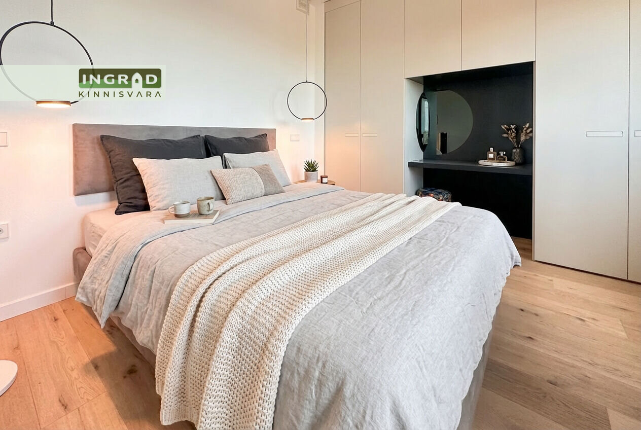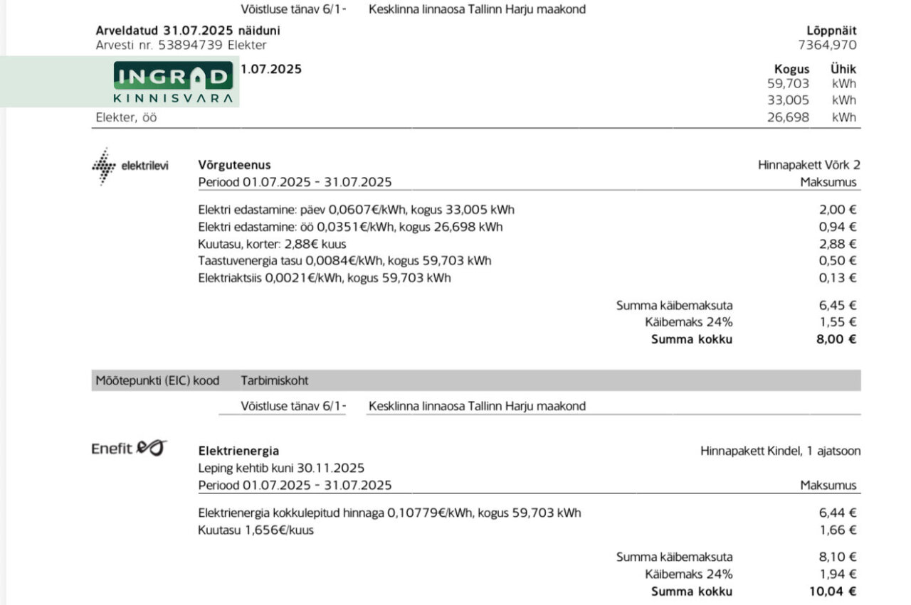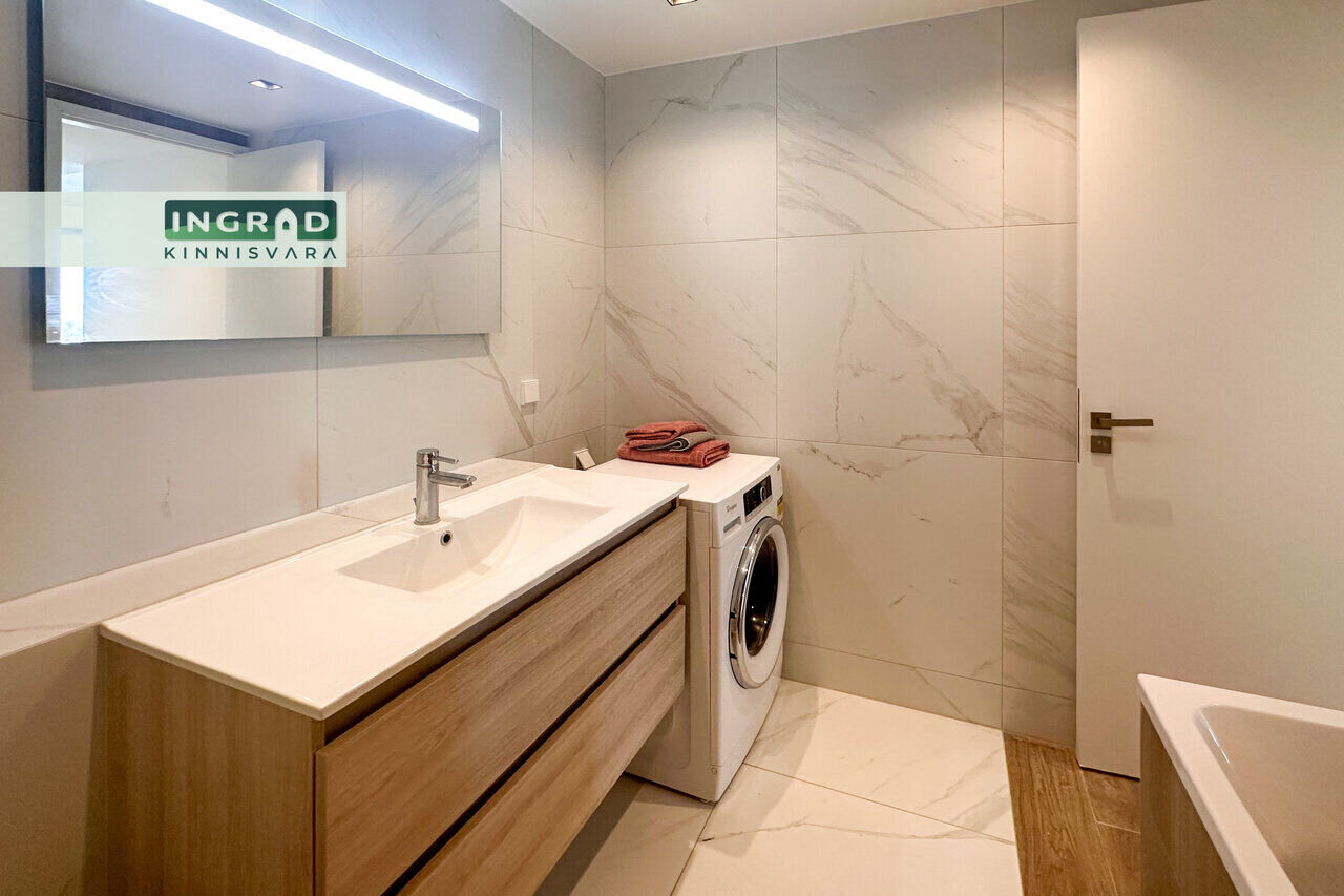 Современная и светлая 2-комнатная КВАРТИРА с открытой планировкой. Из больших панорамных окон открывается потрясающий вид на Таллин. Полы покрыты натуральным паркетом, кухня стильная — мебель на заказ и встроенная техника. В гостиной удобный диван, обеденная зона и современное освещение. В спальне двуспальная кровать и просторный шкаф-гардероб. Ванная комната функциональная, со стиральной машиной.