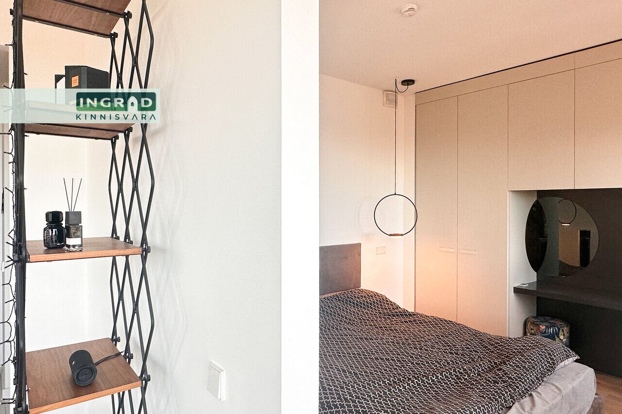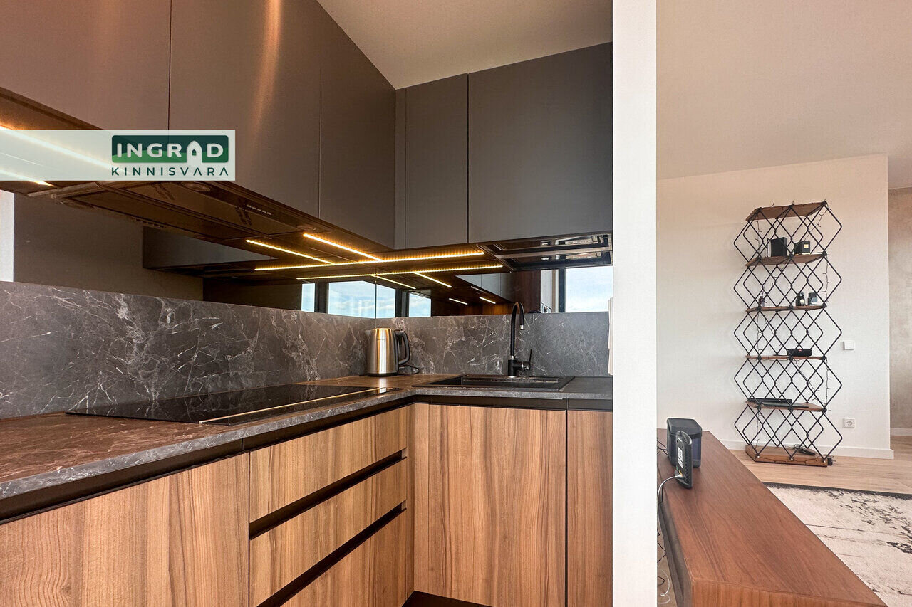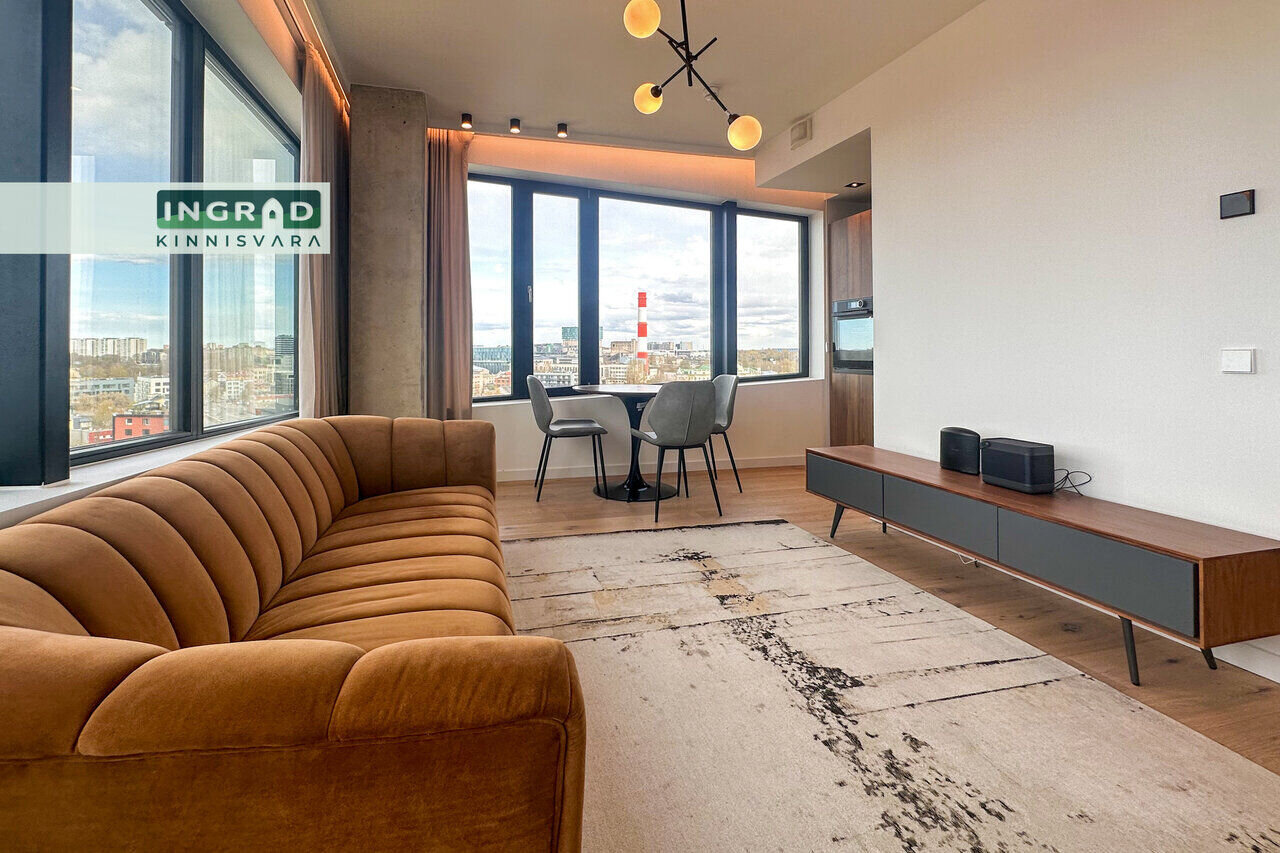 Современная и светлая 2-комнатная КВАРТИРА с открытой планировкой. Из больших панорамных окон открывается потрясающий вид на Таллин. Полы покрыты натуральным паркетом, кухня стильная — мебель на заказ и встроенная техника. В гостиной удобный диван, обеденная зона и современное освещение. В спальне двуспальная кровать и просторный шкаф-гардероб. Ванная комната функциональная, со стиральной машиной.
