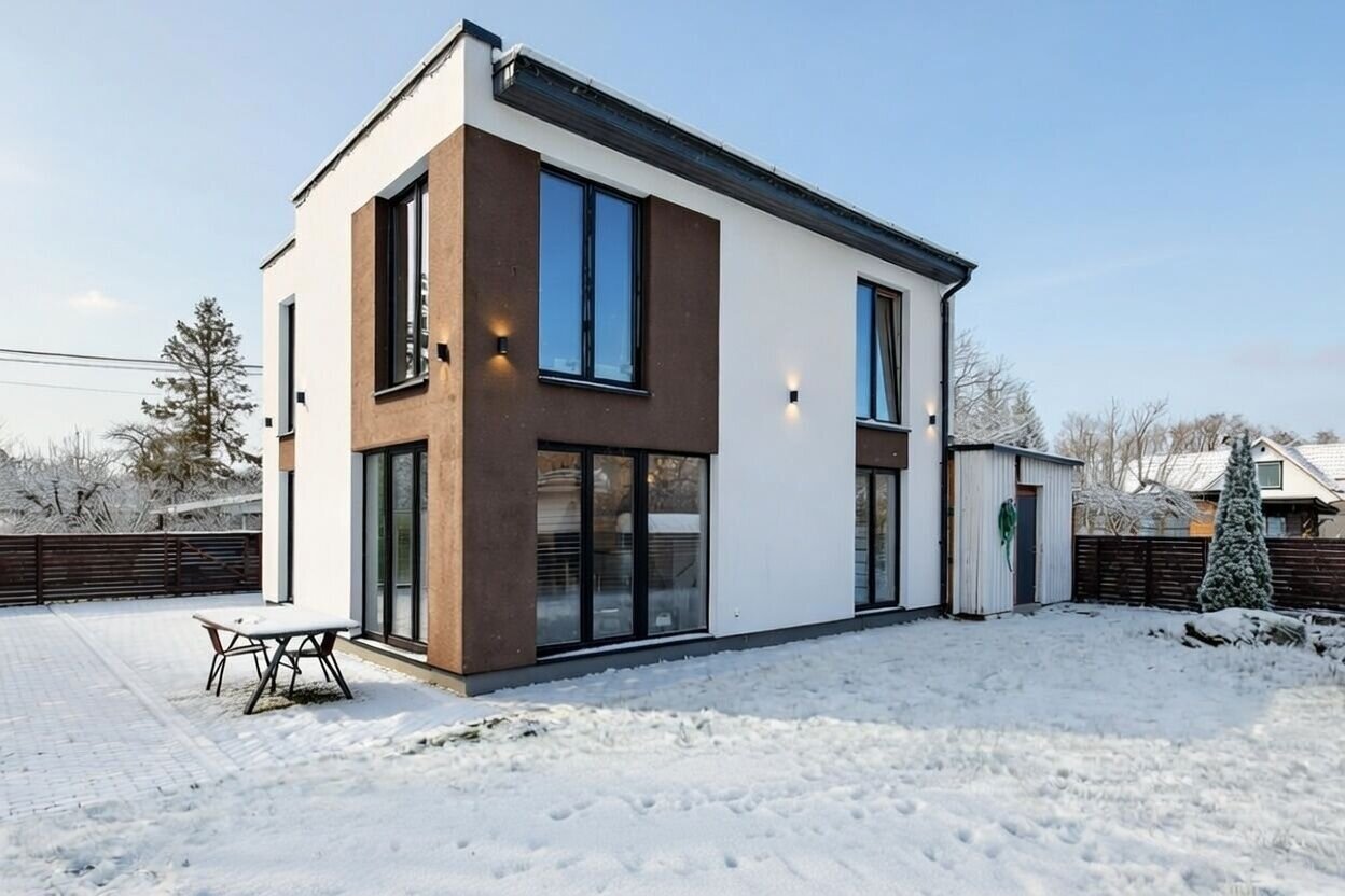 Дом современной архитектуры, с большими окнами и продуманной планировкой – много света и логичное зонирование пространства.