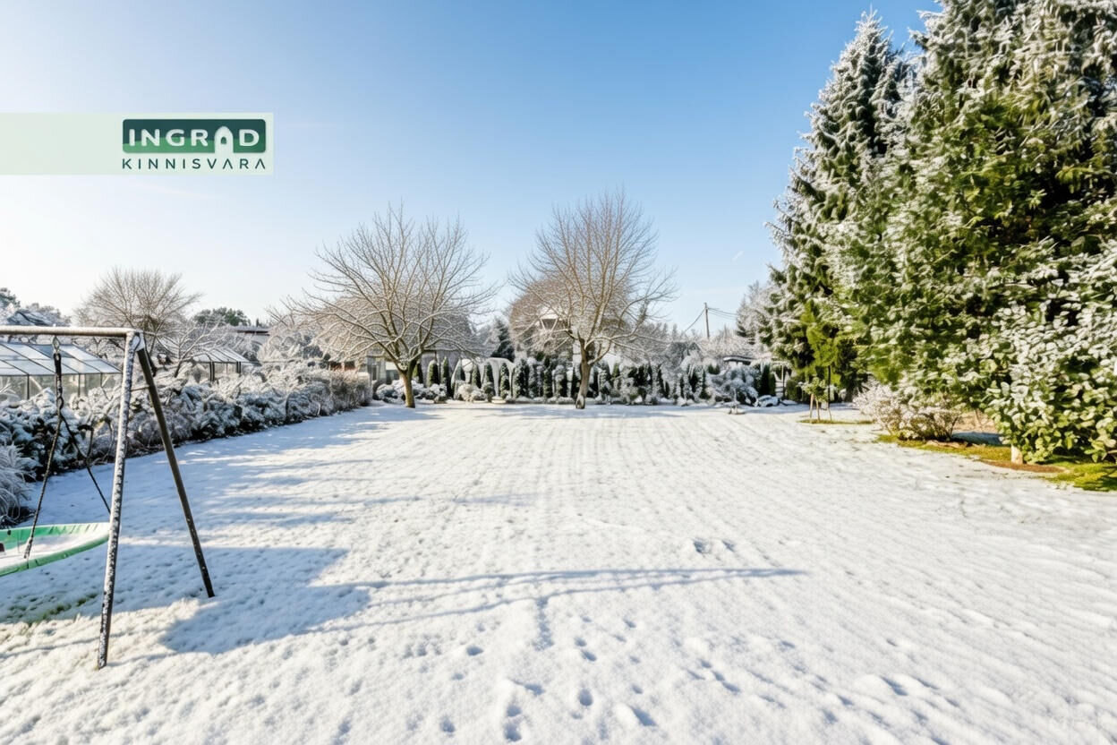 На участке растут плодовые деревья и кустарники (яблоня, груша, крыжовник, смородина).