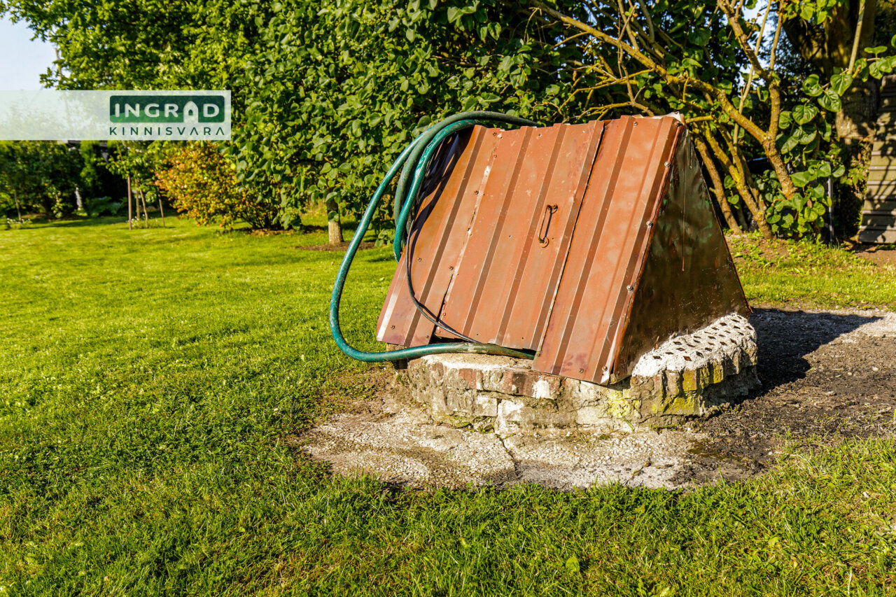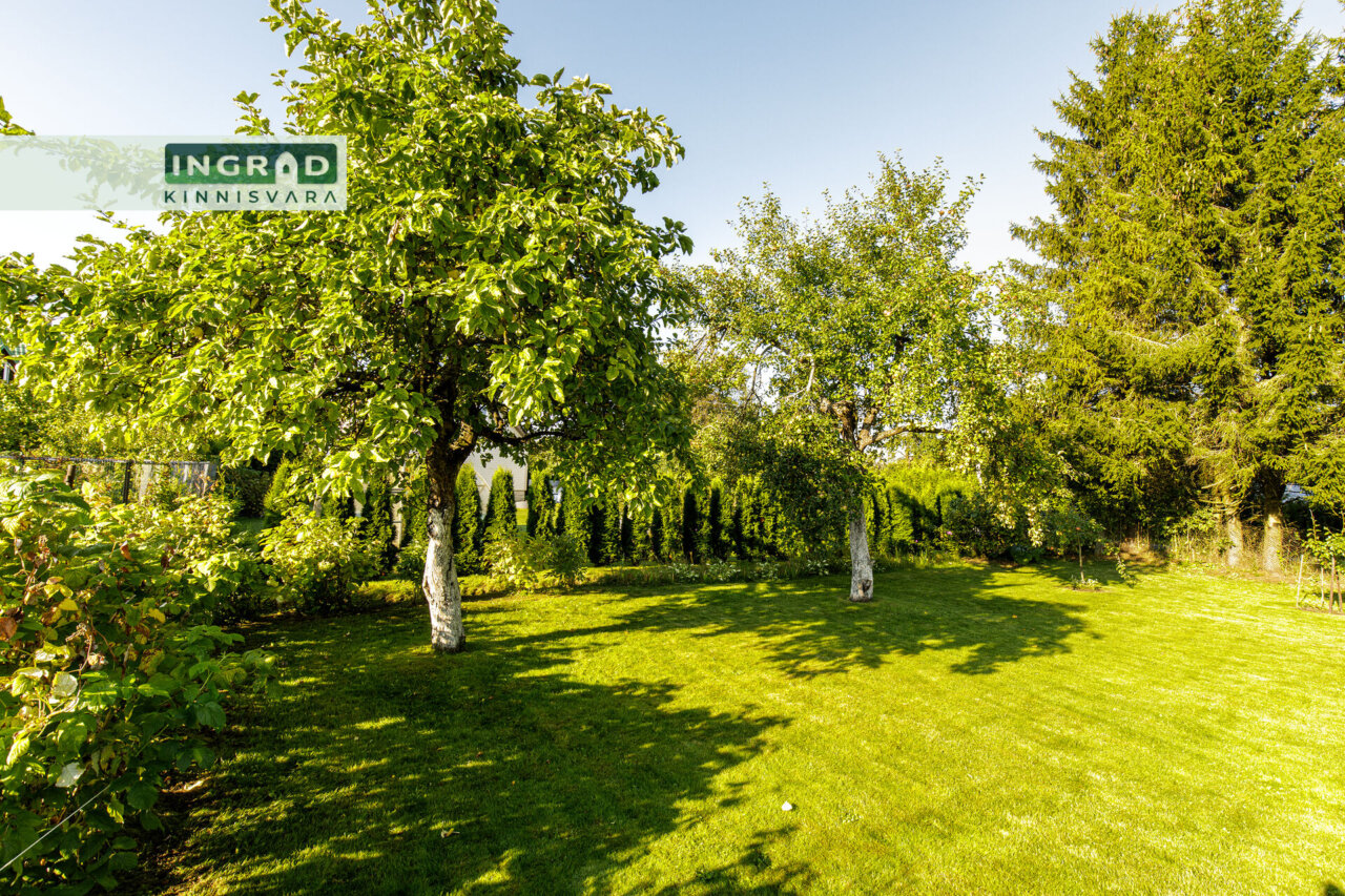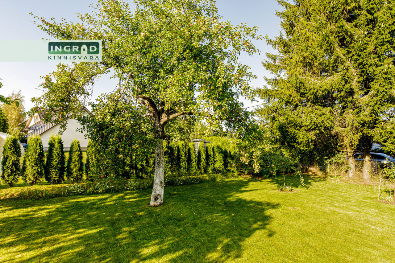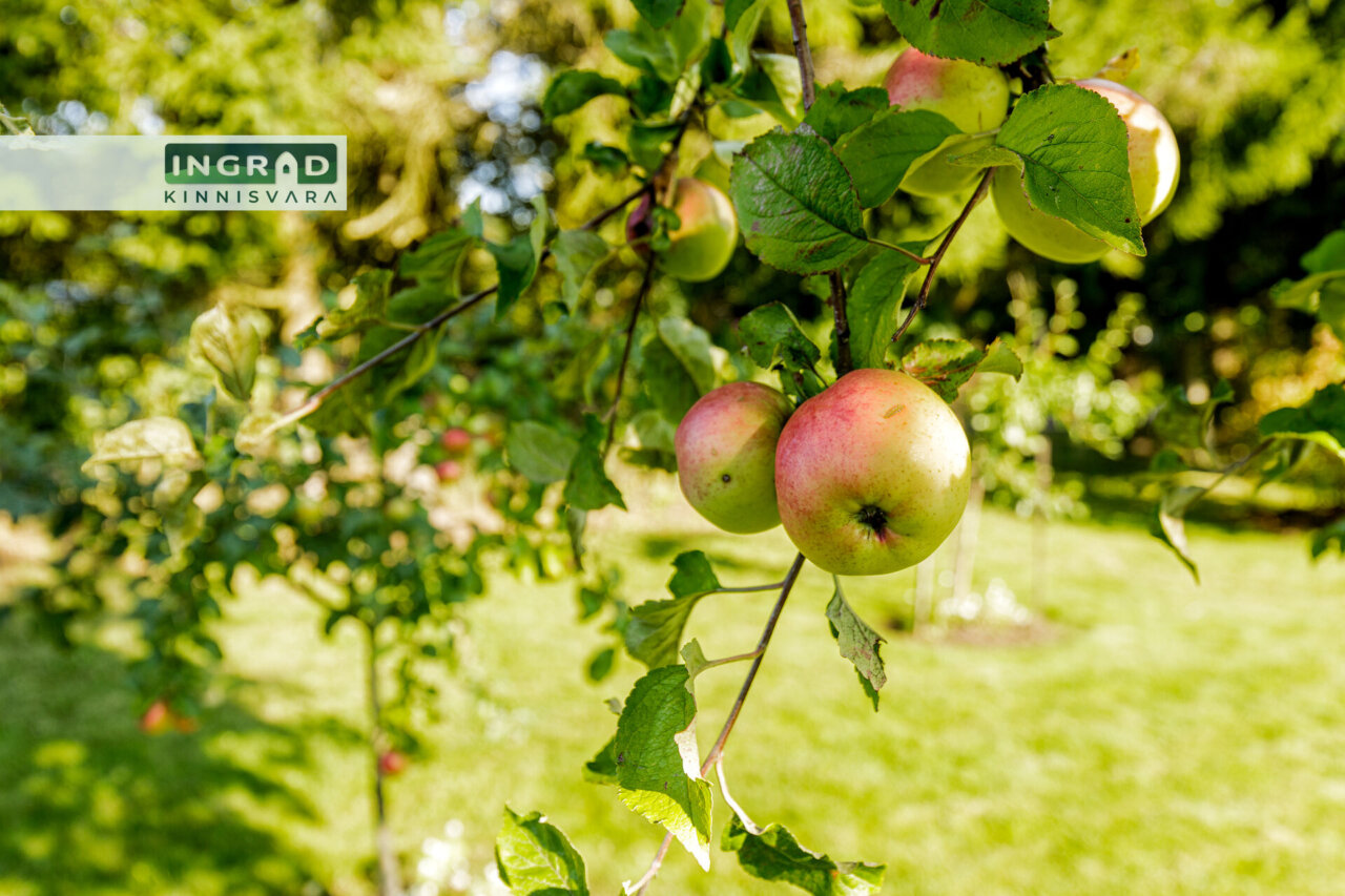 На участке растут плодовые деревья и кустарники (яблоня, груша, крыжовник, смородина).