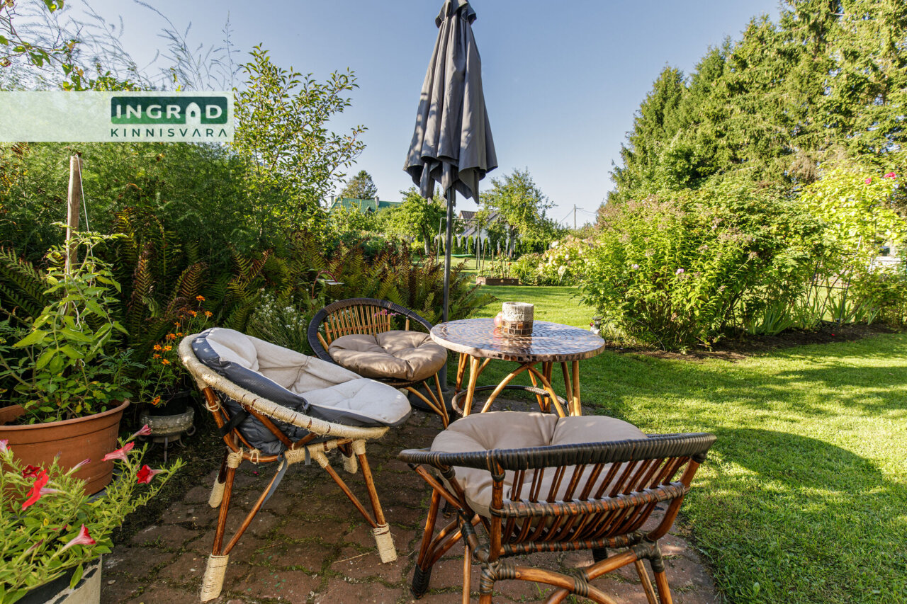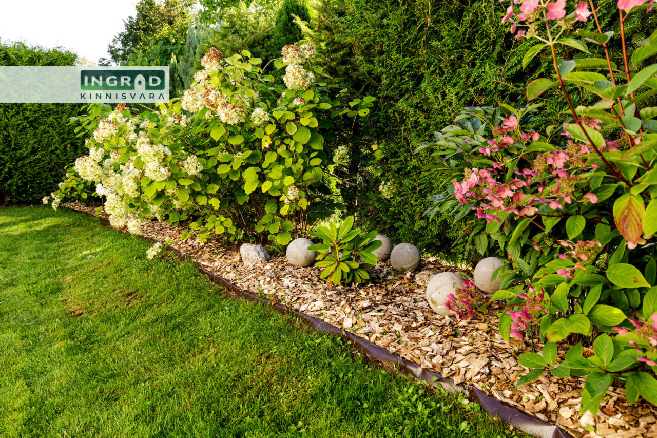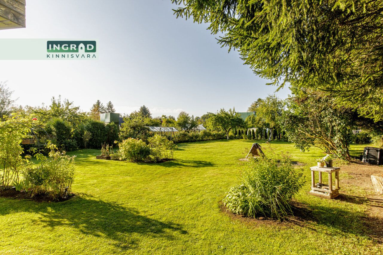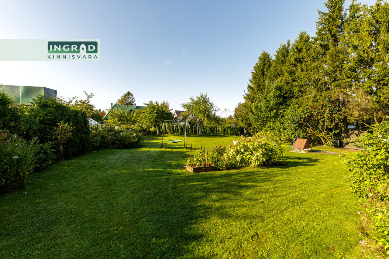 На участке растут плодовые деревья и кустарники (яблоня, груша, крыжовник, смородина).