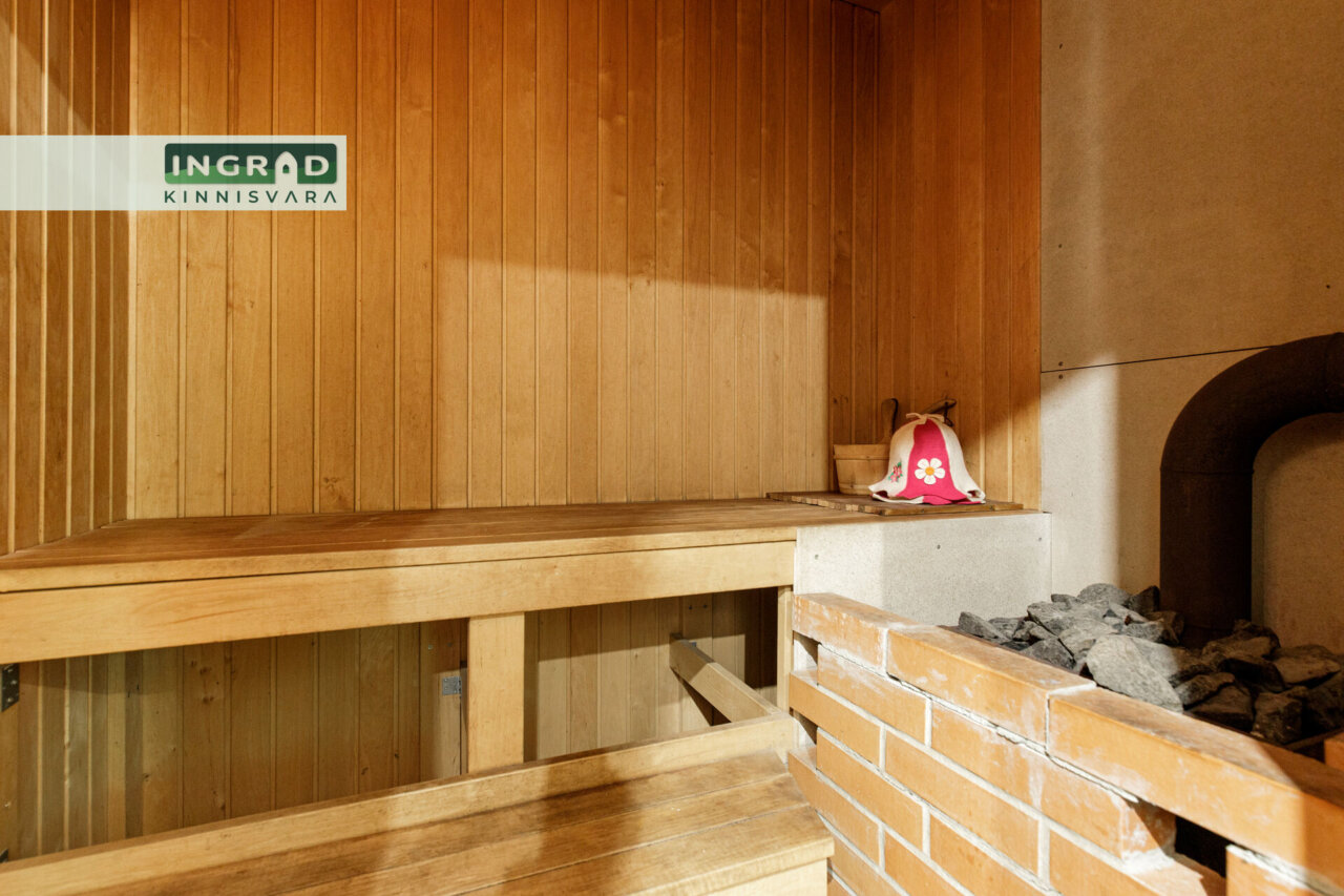 • Отопление: Buderus õhk-vesi soojuspump, тёплый пол (1 этаж), радиаторы (2 этаж), камин, печь в сауне.