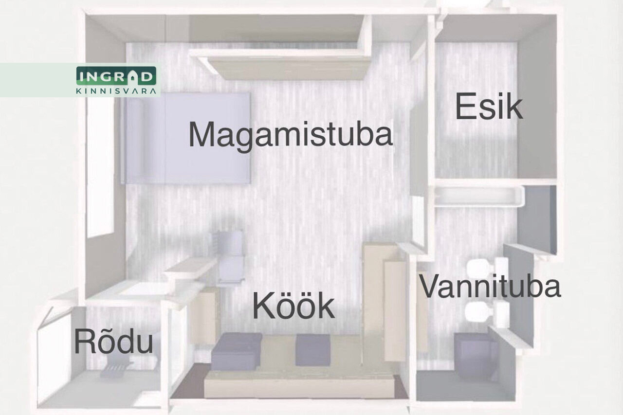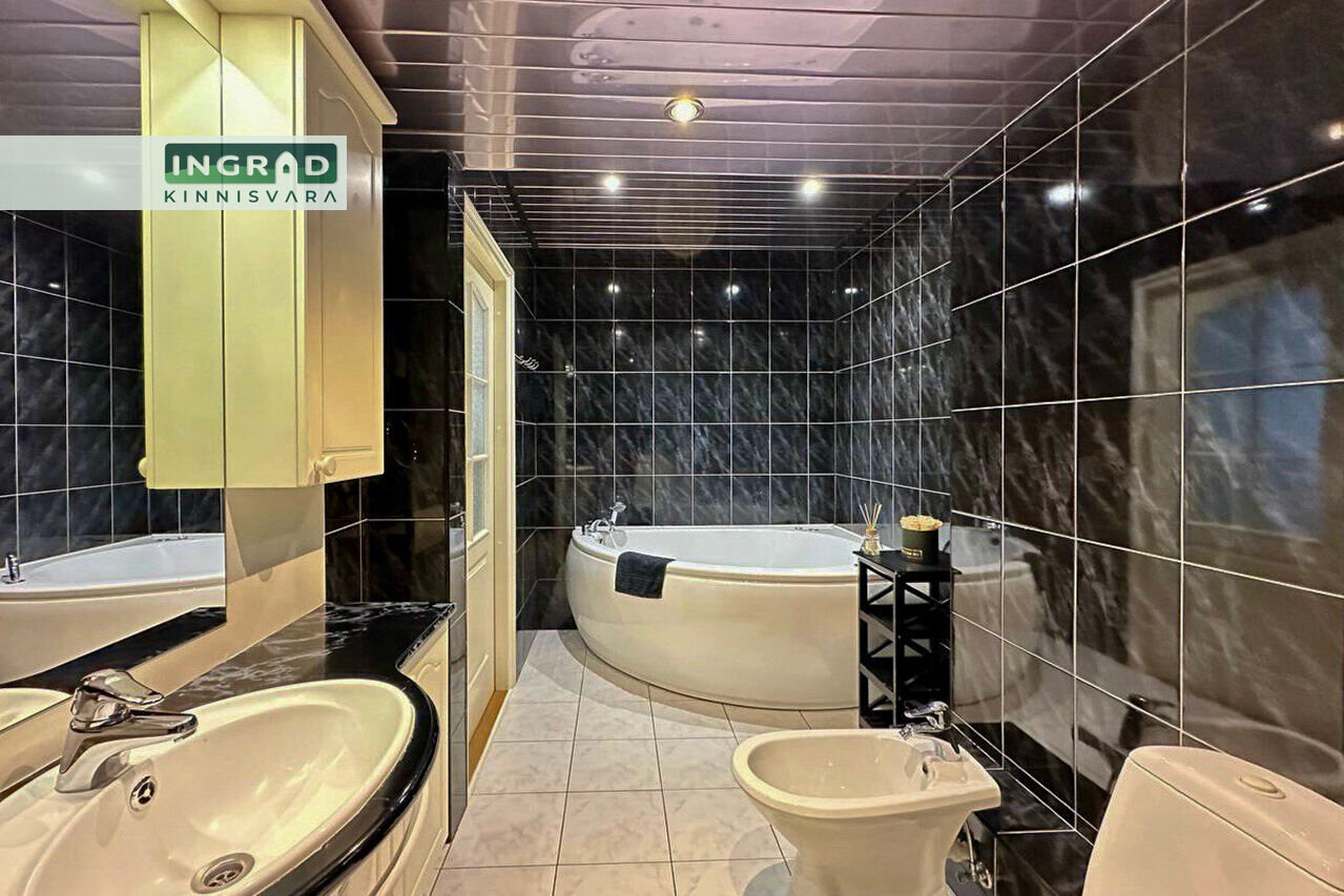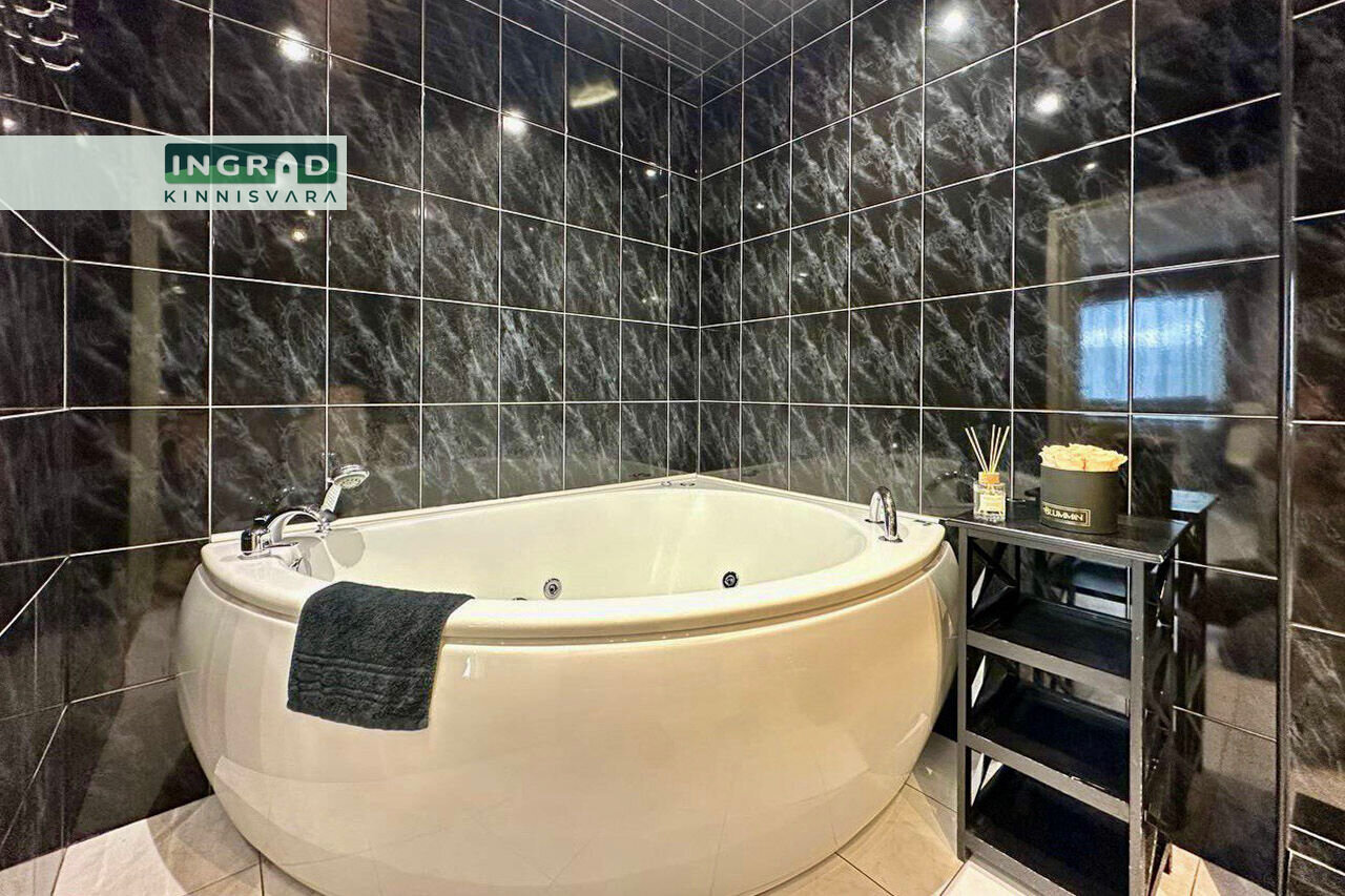 Современная планировка: просторная студия, открытая кухня, большая ванная с джакузи и WC.