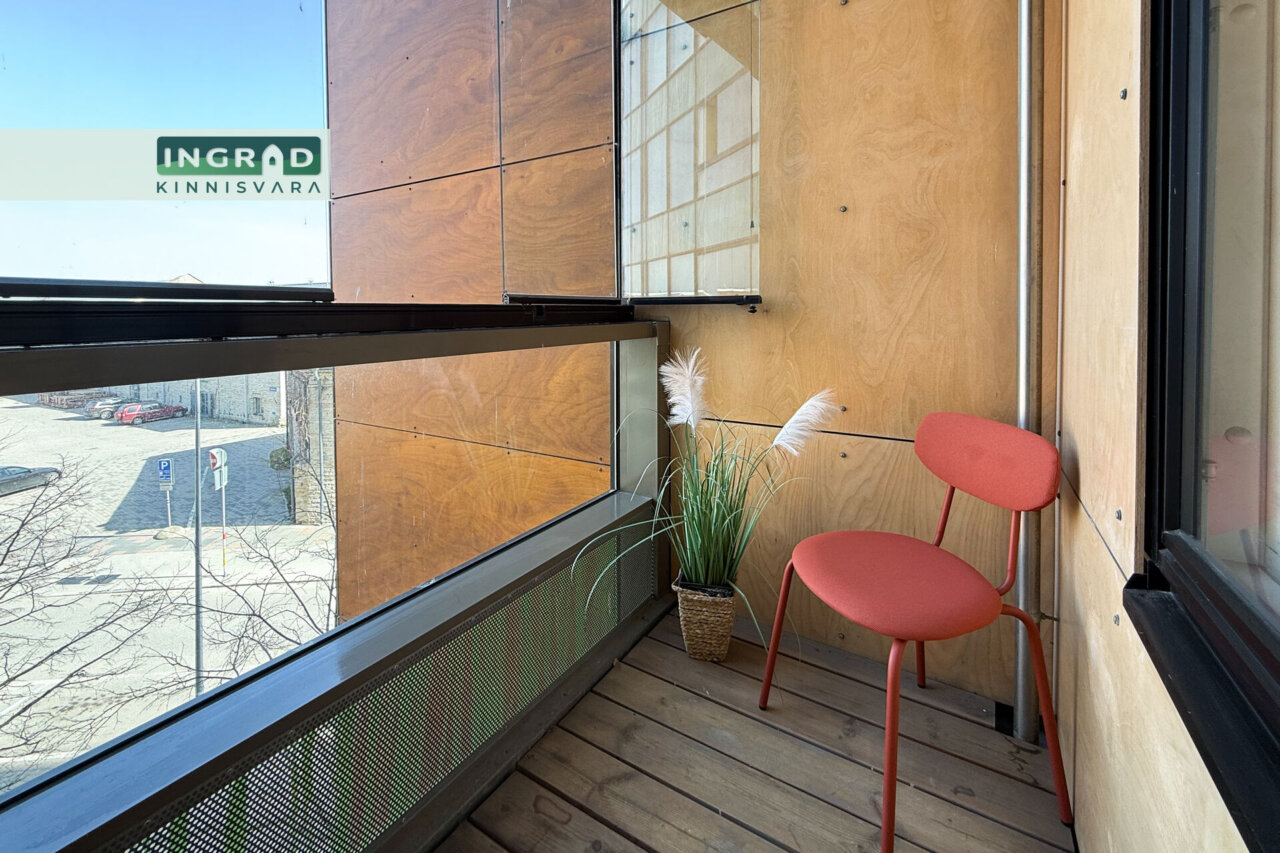 Застеклённый балкон с приятным видом на улицу — отличное место для утреннего кофе или вечернего отдыха. Установлена компактная встроенная кухня — всё, что нужно под рукой. В коридоре — вместительный шкаф, который решит вопрос с хранением. Уникальная дизайнерская лампа ручной работы — настоящий акцент интерьера.