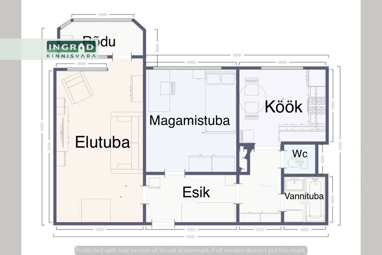 Светлая и удобной планировки 2-комнатная квартира в зелёном и спокойном районе Ласнамяэ.