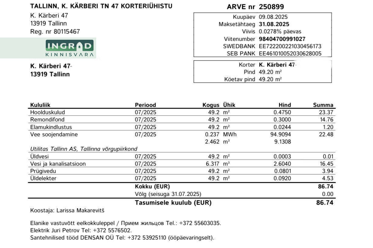 Квартира находится в зелёной и спокойной части Ласнамяэ, где всё необходимое для жизни – в шаговой доступности.